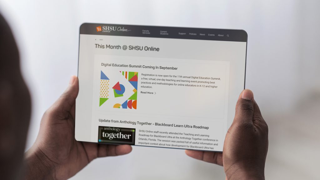 Inside, you’ll find updates on Blackboard and other digital tools, news about emerging technologies, highlights from major SHSU Online projects, and spotlights on the faculty, staff, and students who make this work meaningful. We also share practical guidance and thoughtful insights that can help shape your approach to online instruction and support student success.