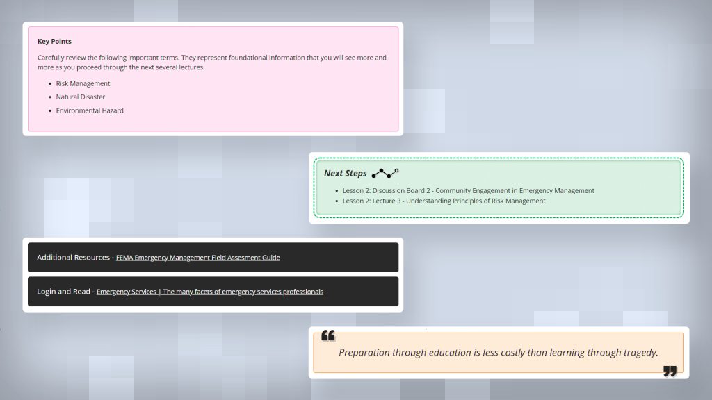 This tool includes a collection of several helpful features that enable you to painlessly employ a variety of consistent and attractive stylings that can add visual interest and instructive context to your course content.